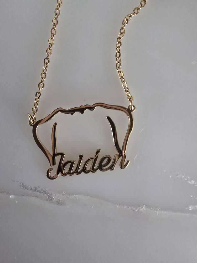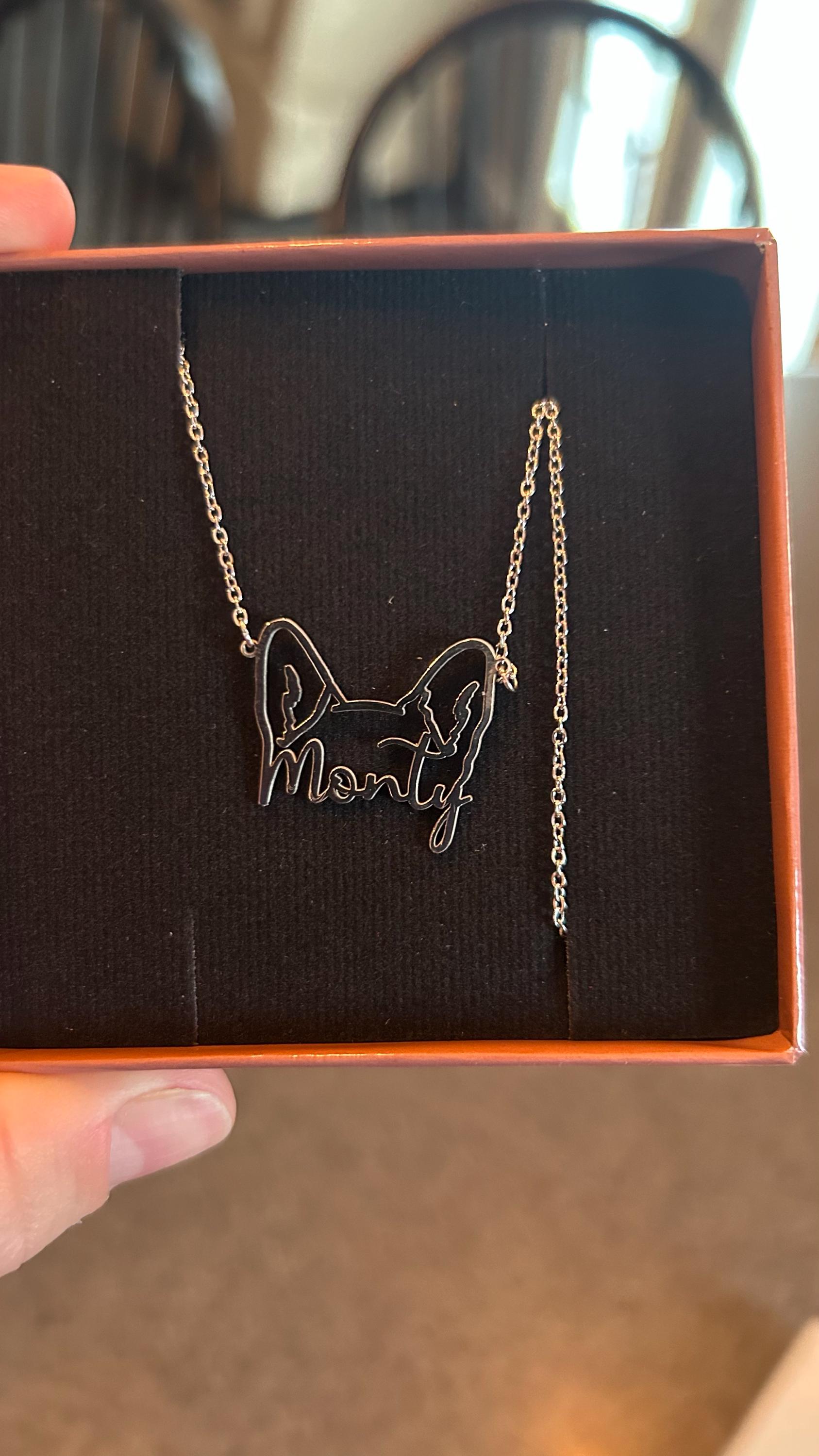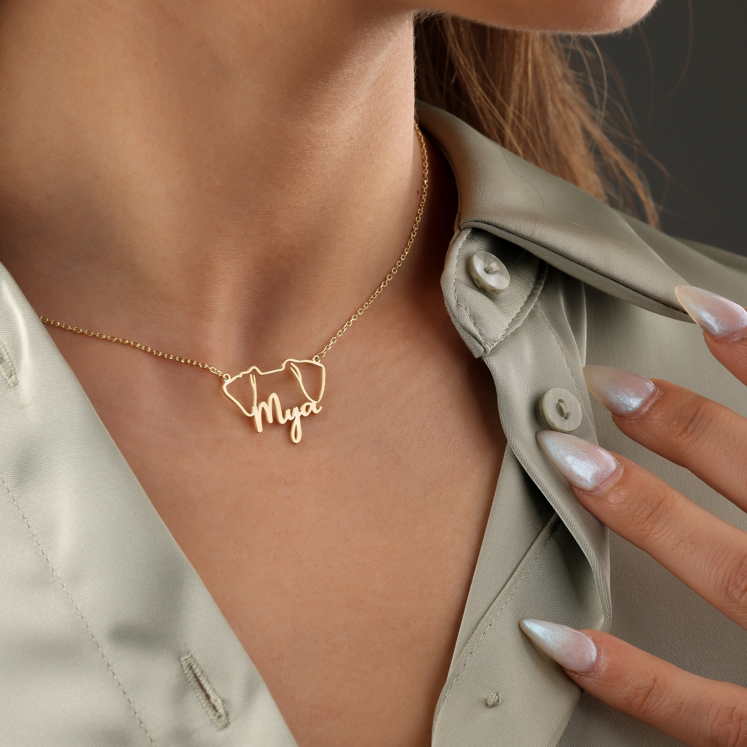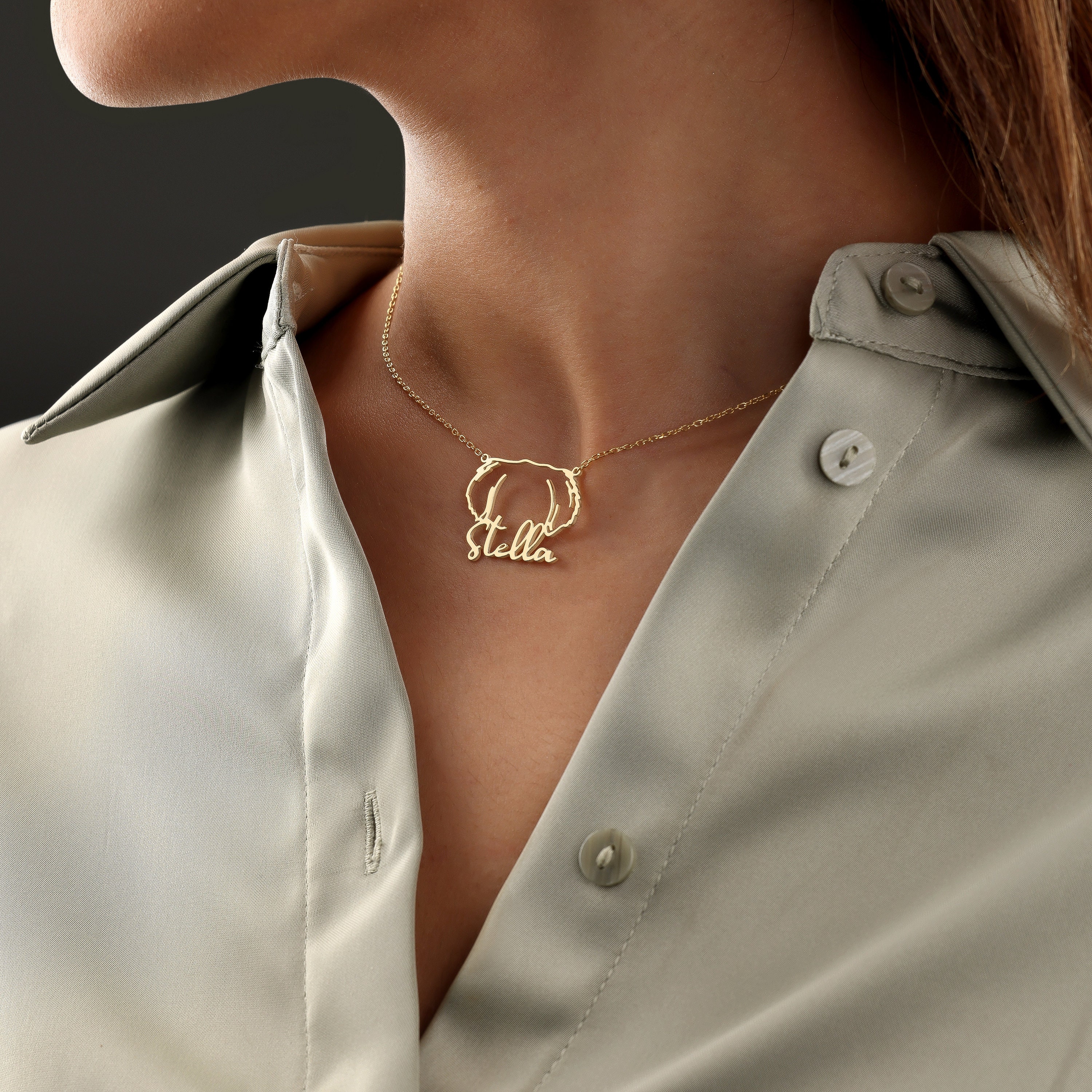 🐶Honor your dog's loyalty and friendship with our dog name necklace. This personalized piece combines the elegance of a nameplate with the playful charm of a dog silhouette. Each letter is engraved to create a unique and meaningful accessory. Adding a touch of whimsy, the dog necklace symbolizes the joy and love that dogs bring to our lives. Made from exquisite, high-quality materials, this necklace is more than just a piece of jewelry, it's a heartfelt tribute to your four-legged friend. Whether worn everyday or for special occasions, the dog name necklace is a stylish and sentimental accessory that honors the bond between you and your dog. Cherish your memories and show your love with this stunning personalized necklace.
