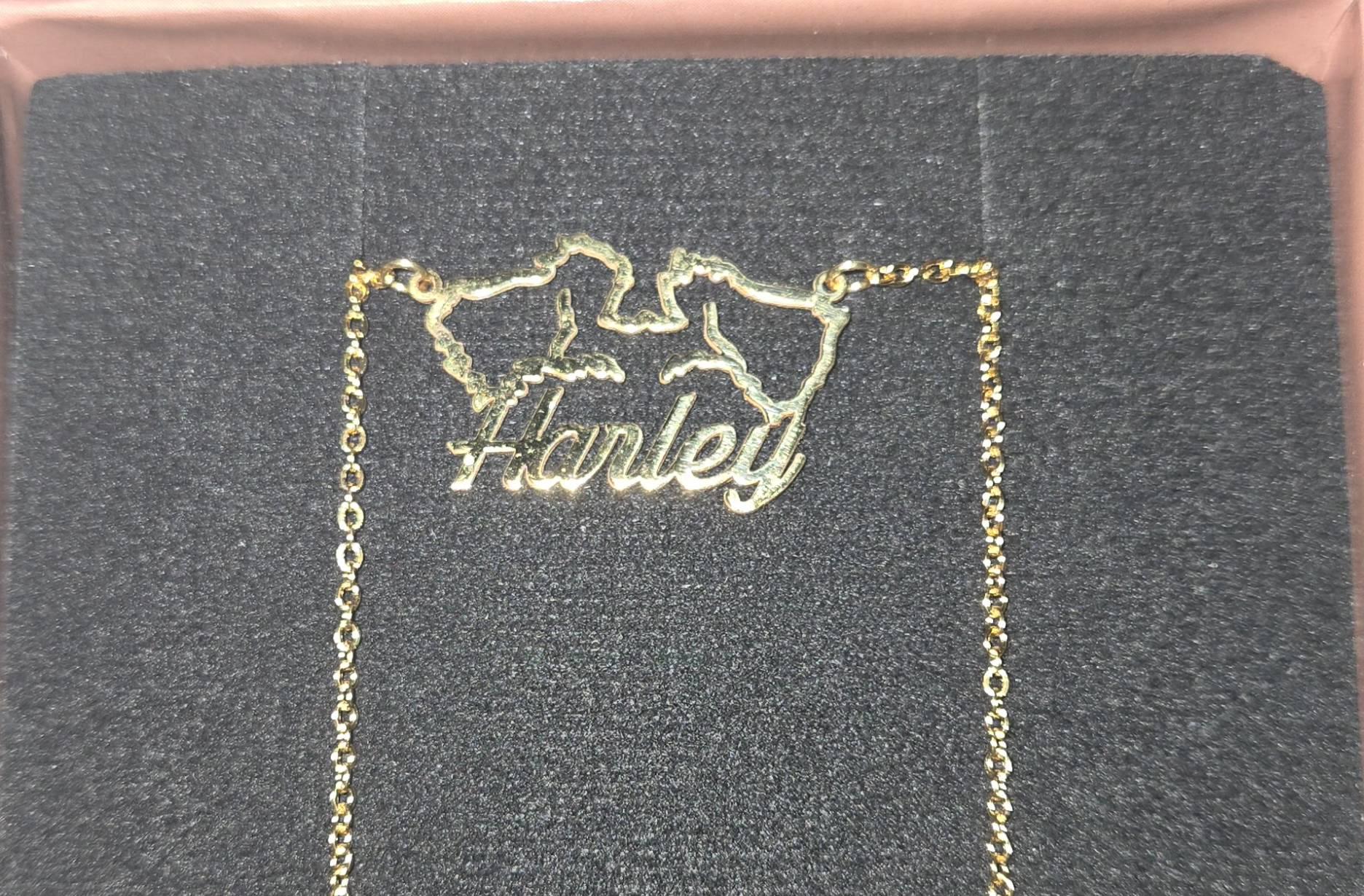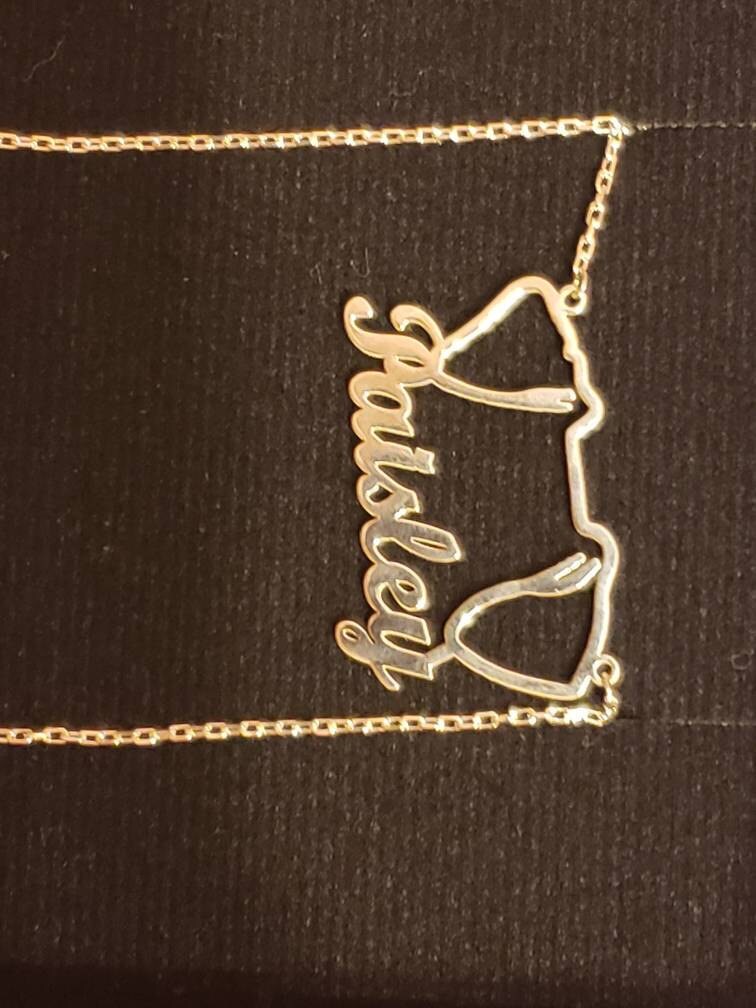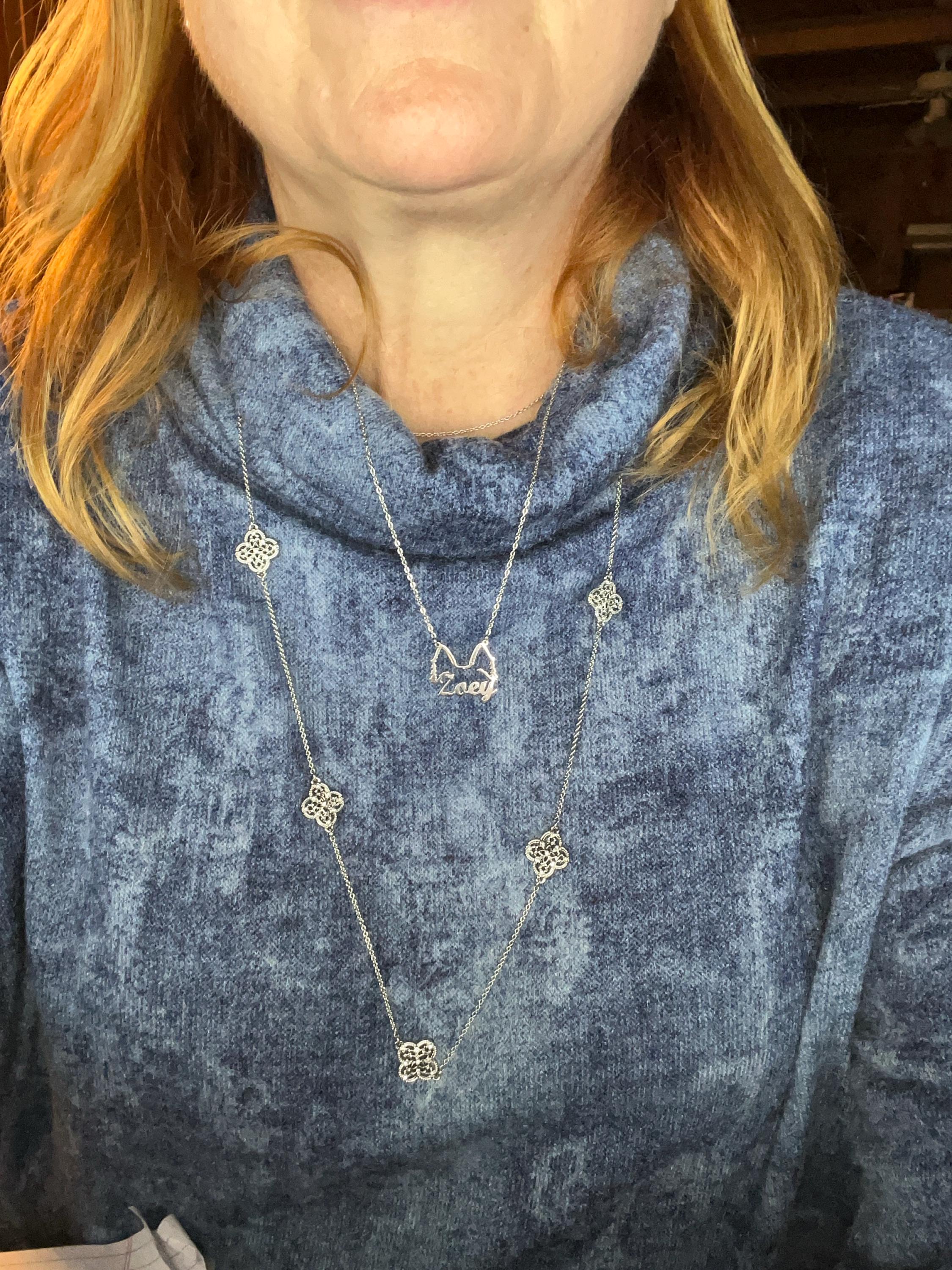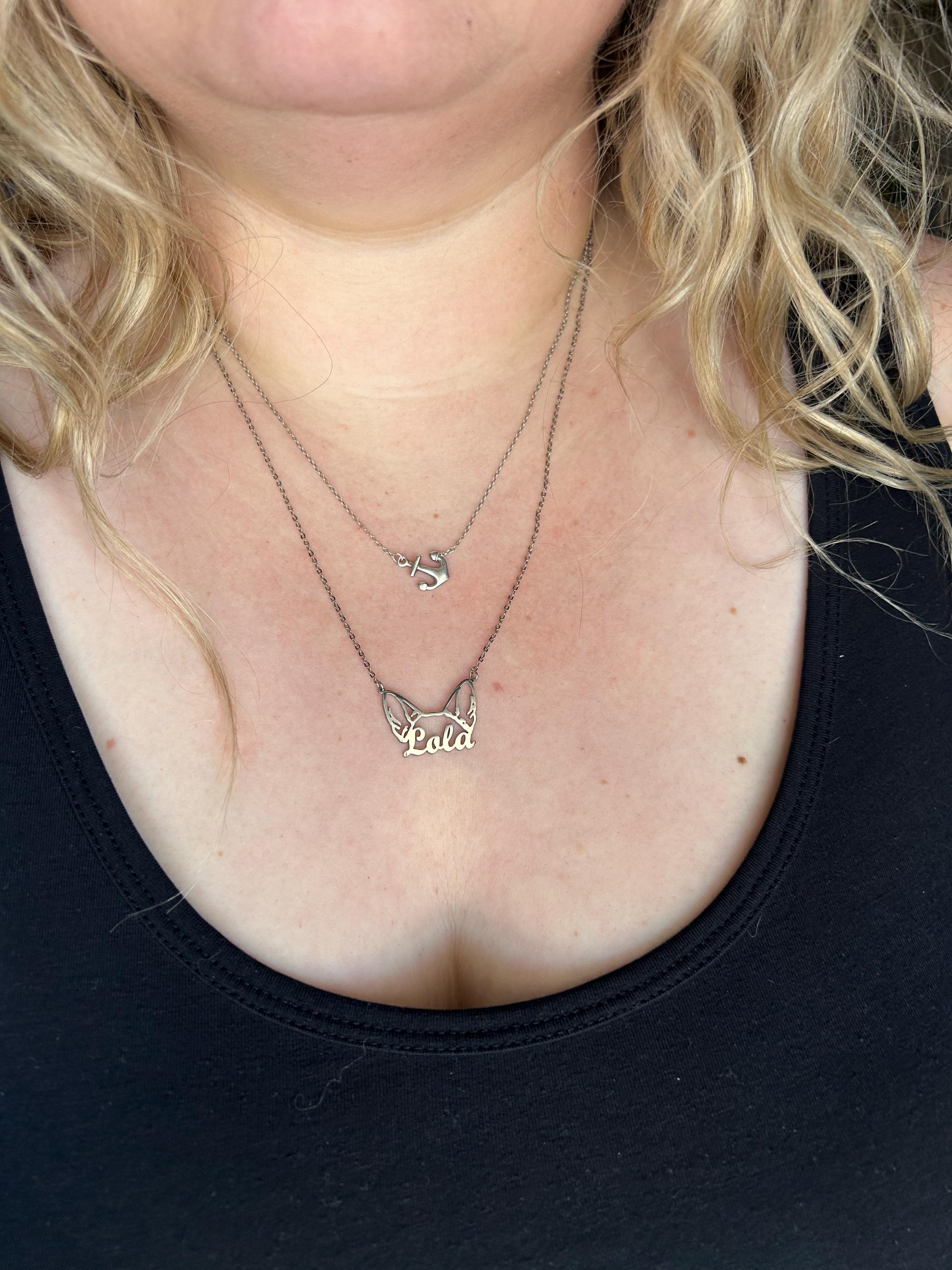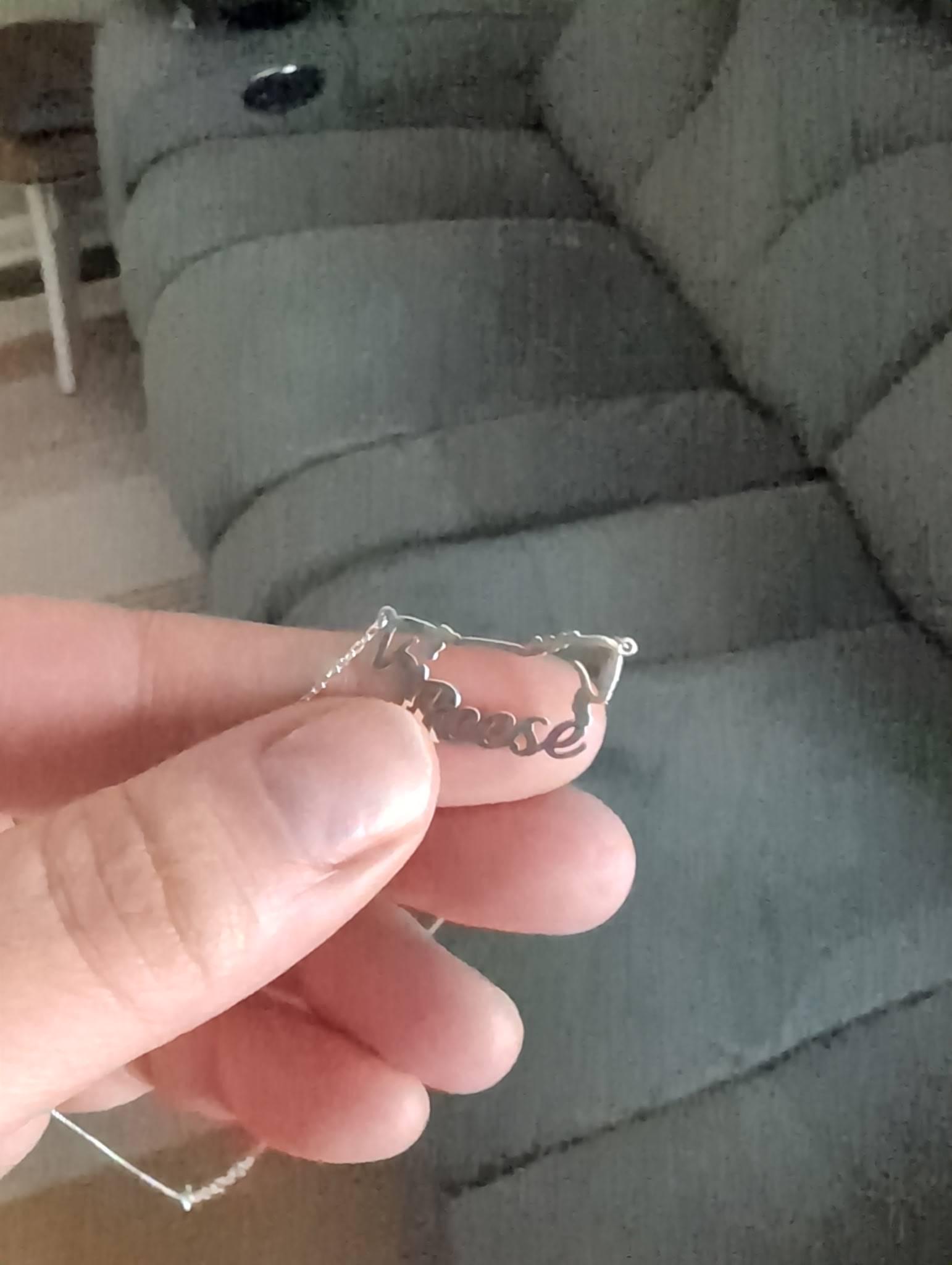 🐶Honor your dog's loyalty and friendship with our dog name necklace. This personalized piece combines the elegance of a nameplate with the playful charm of a dog silhouette. Each letter is engraved to create a unique and meaningful accessory. Adding a touch of whimsy, the dog necklace symbolizes the joy and love that dogs bring to our lives. Made from exquisite, high-quality materials, this necklace is more than just a piece of jewelry, it's a heartfelt tribute to your four-legged friend. Whether worn everyday or for special occasions, the dog name necklace is a stylish and sentimental accessory that honors the bond between you and your dog. Cherish your memories and show your love with this stunning personalized necklace.