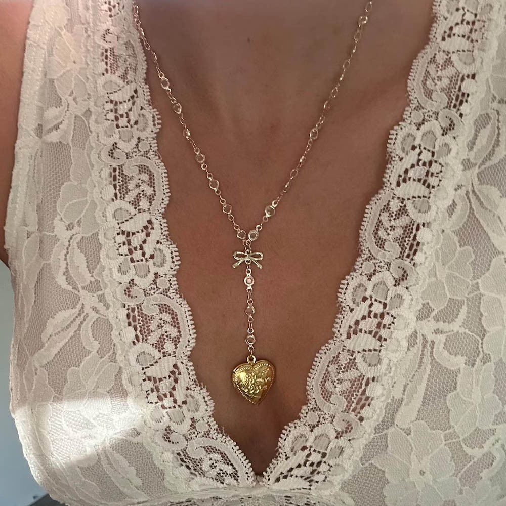 | Style | Personalized Name & Photo Bow Locket Necklace |