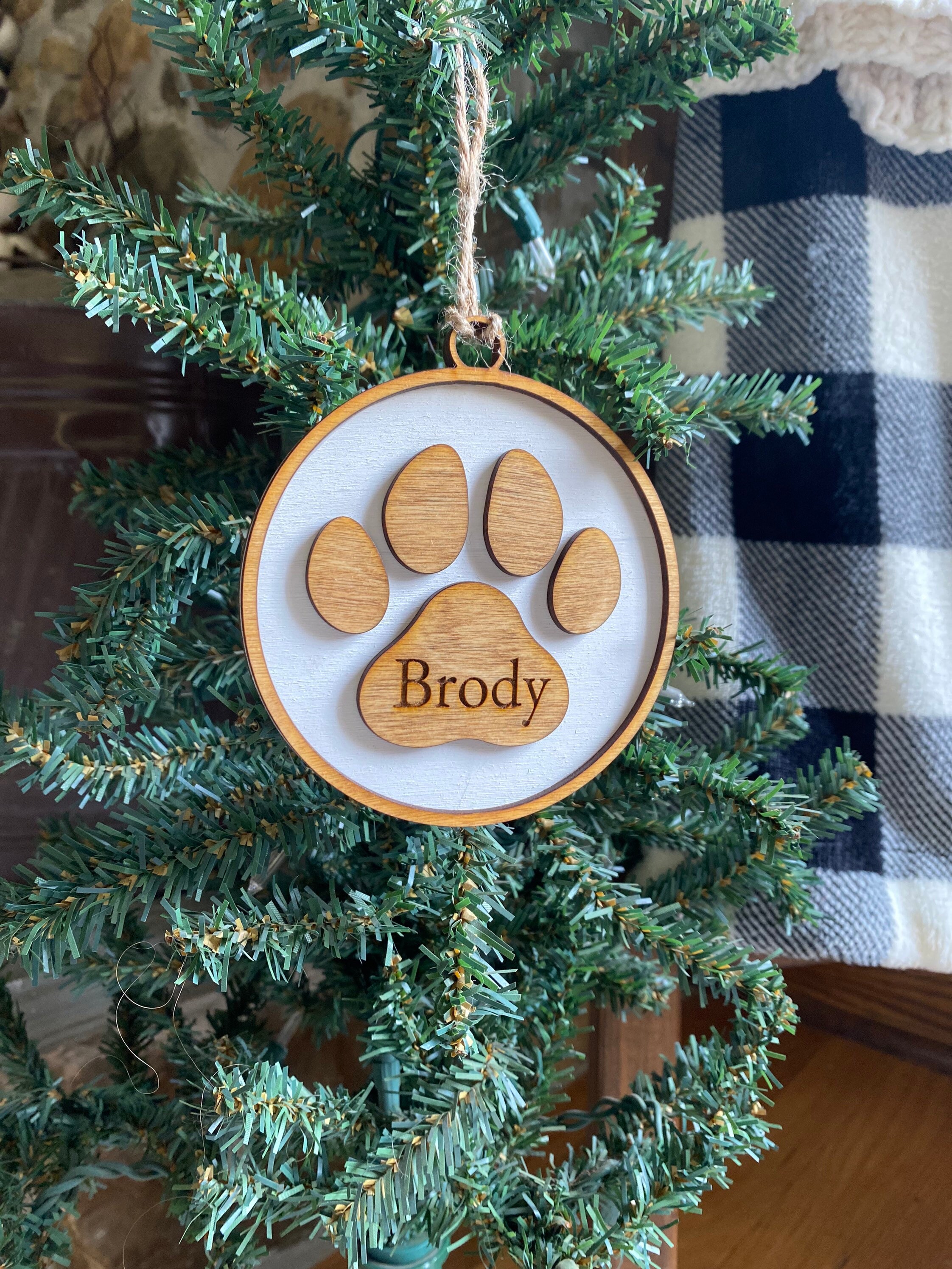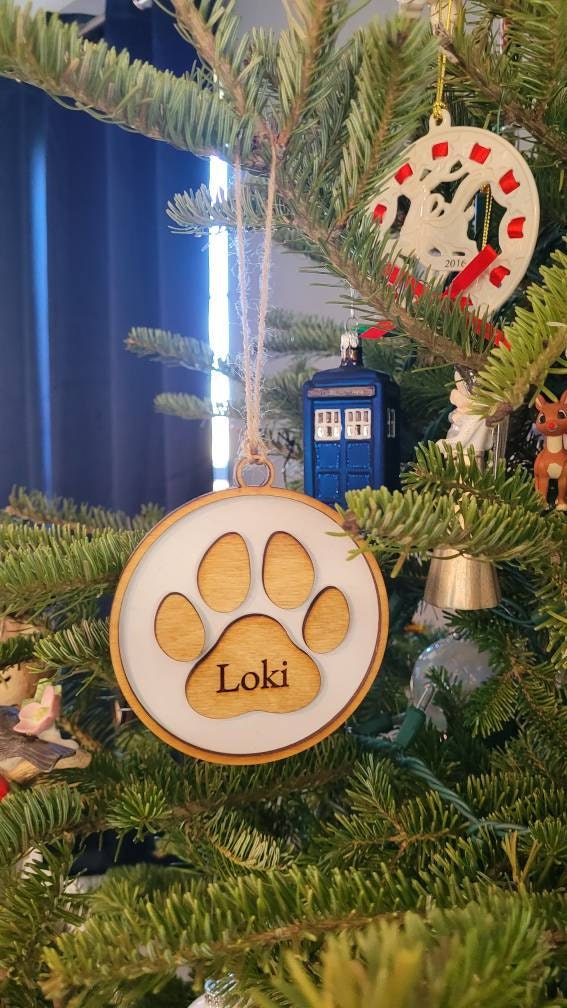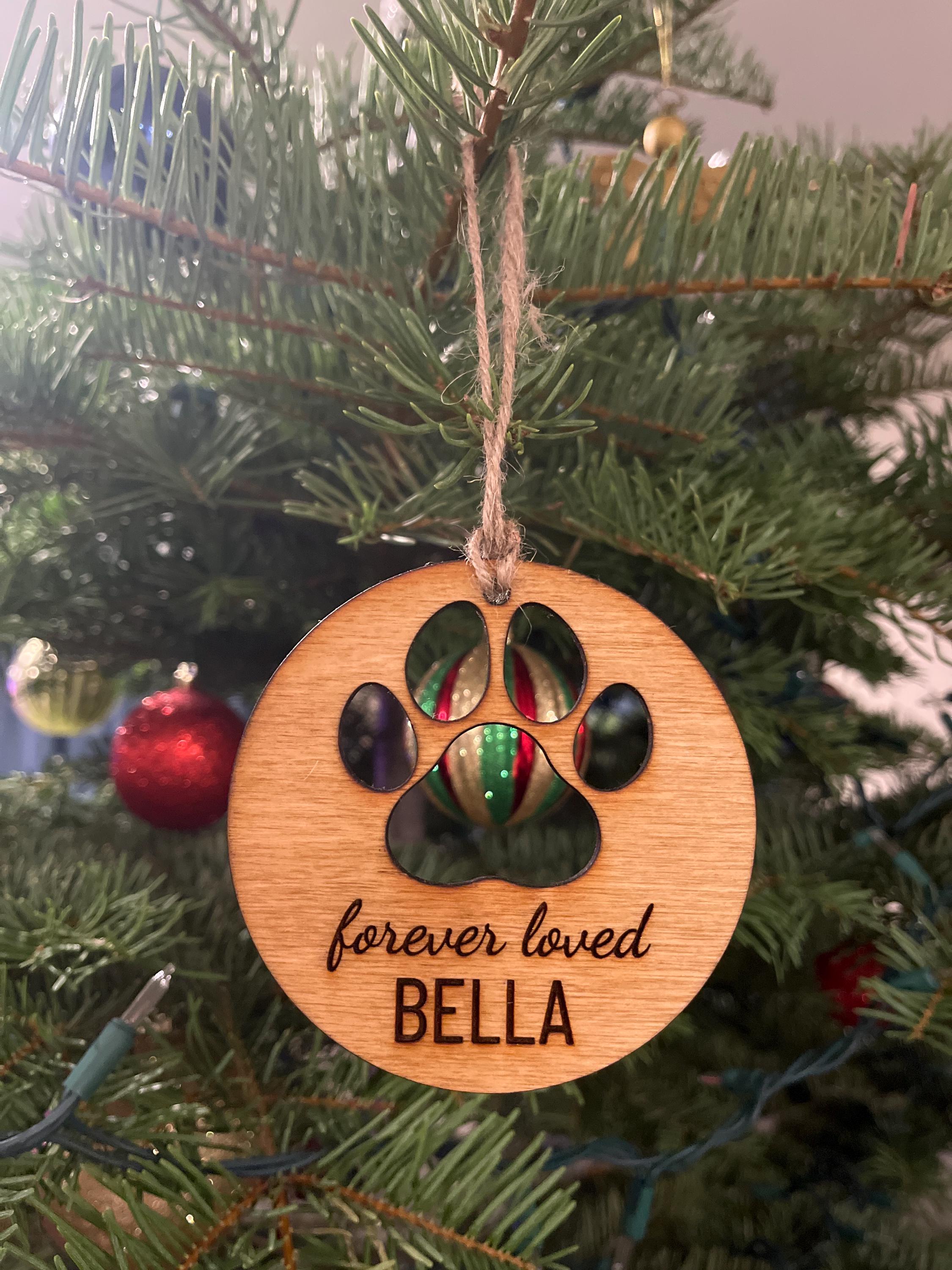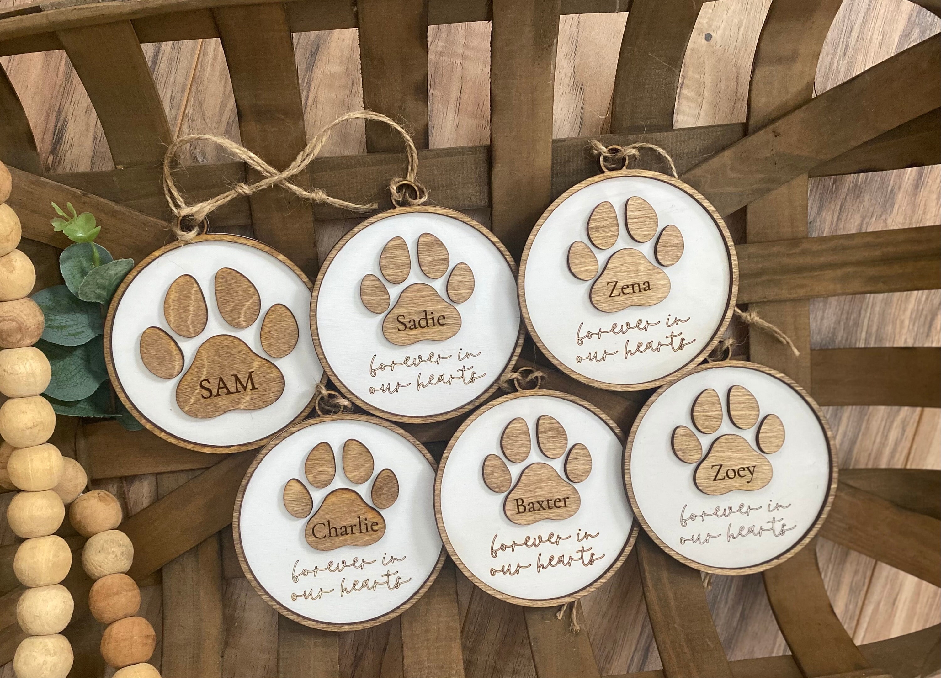 Honor your beloved pet with these beautiful laser cut and engraved wood hangings that make great gifts for family, friends, or any pet lover. Hang on your Christmas tree, stocking, or display year-round.