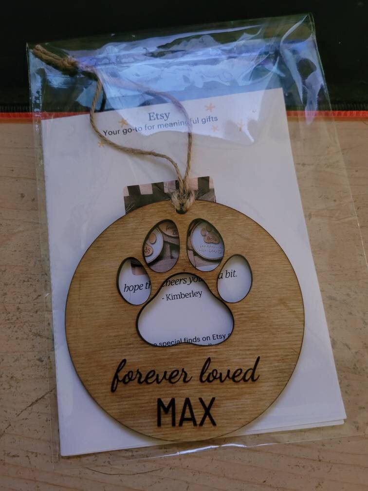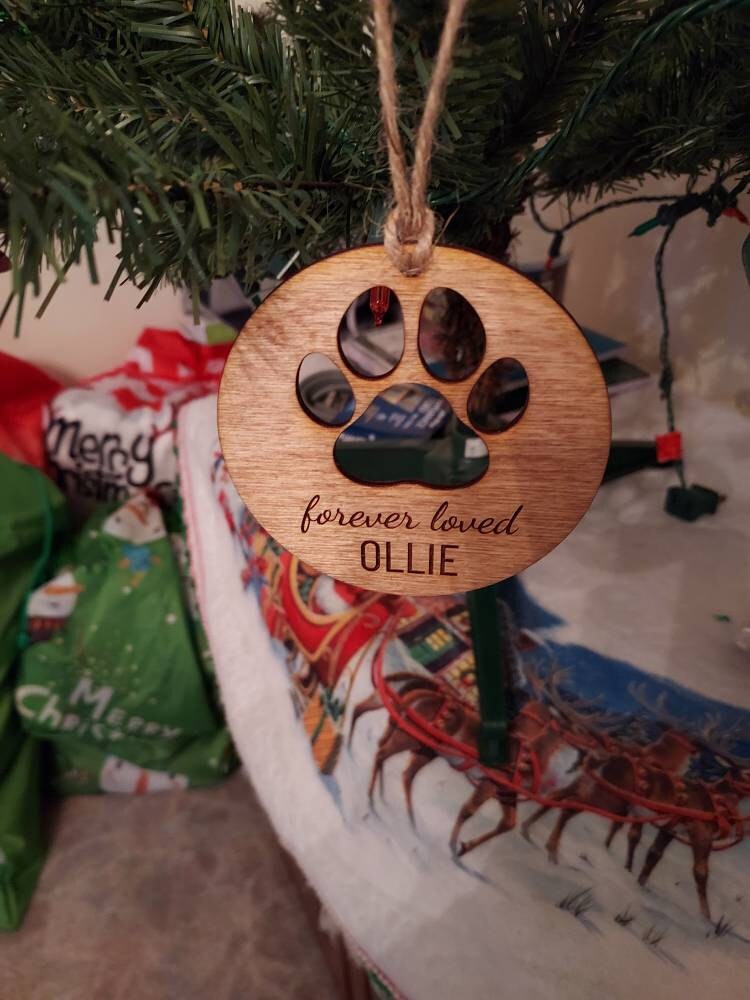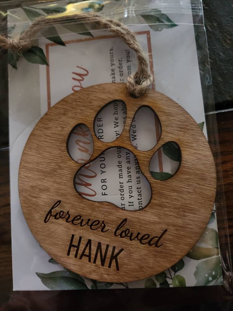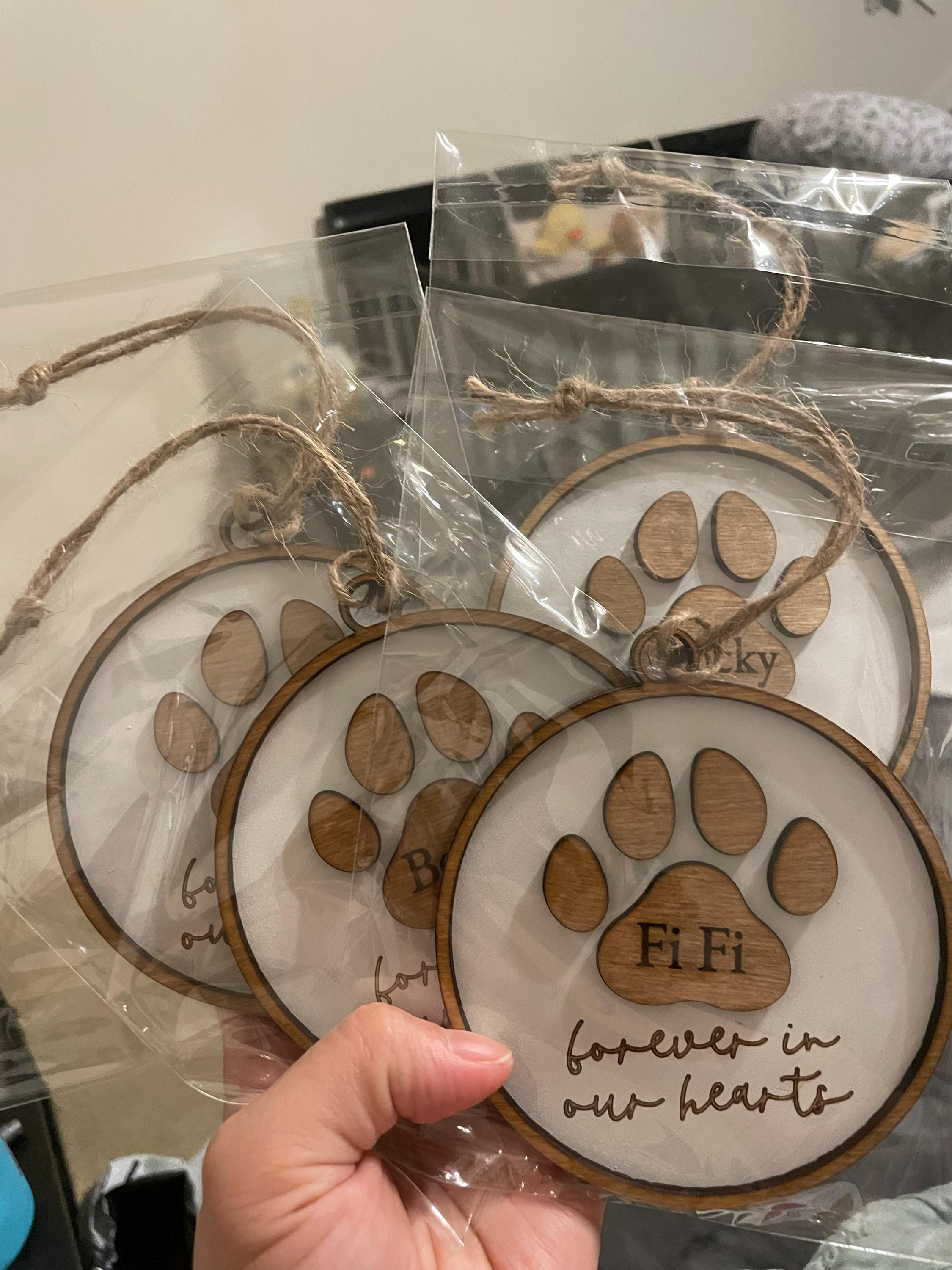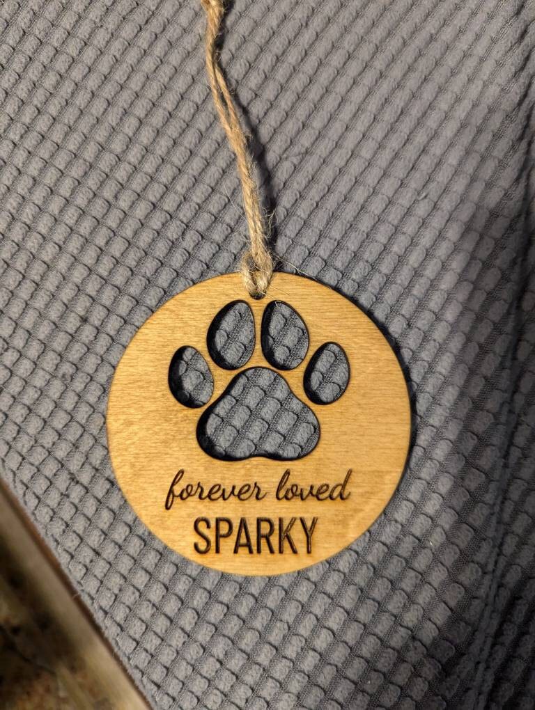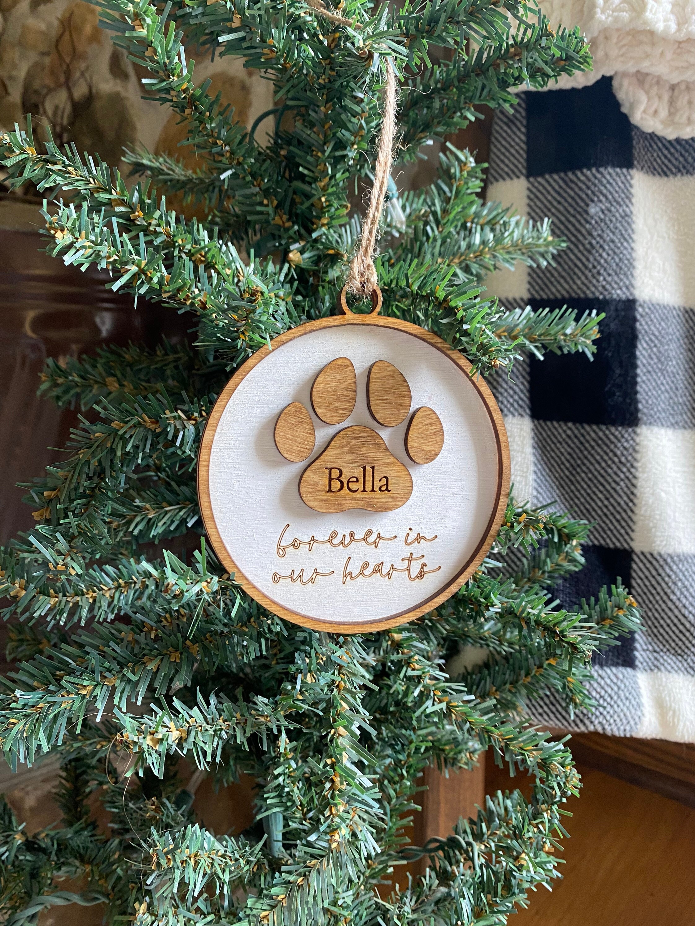 Honor your beloved pet with these beautiful laser cut and engraved wood hangings that make great gifts for family, friends, or any pet lover. Hang on your Christmas tree, stocking, or display year-round.