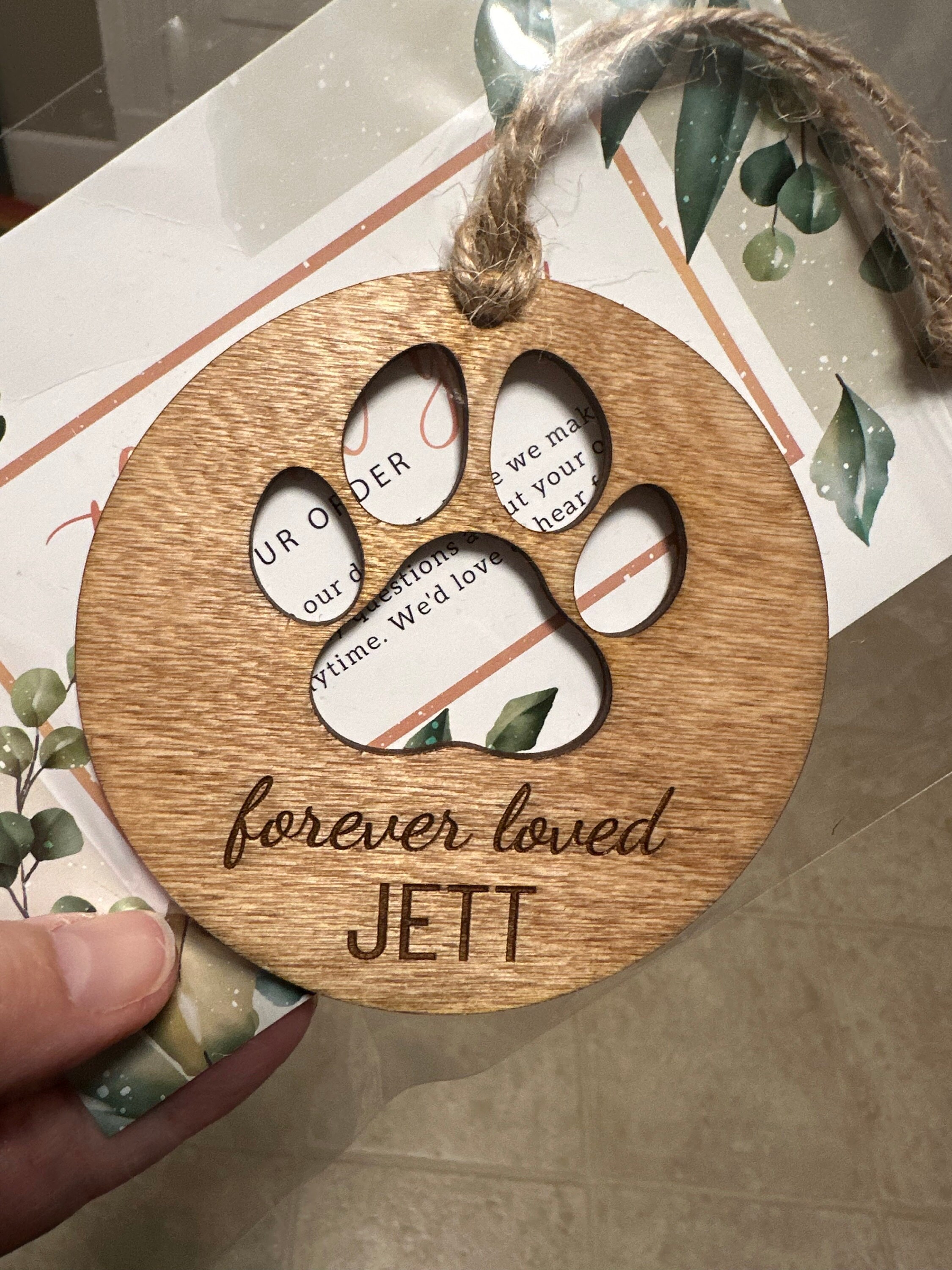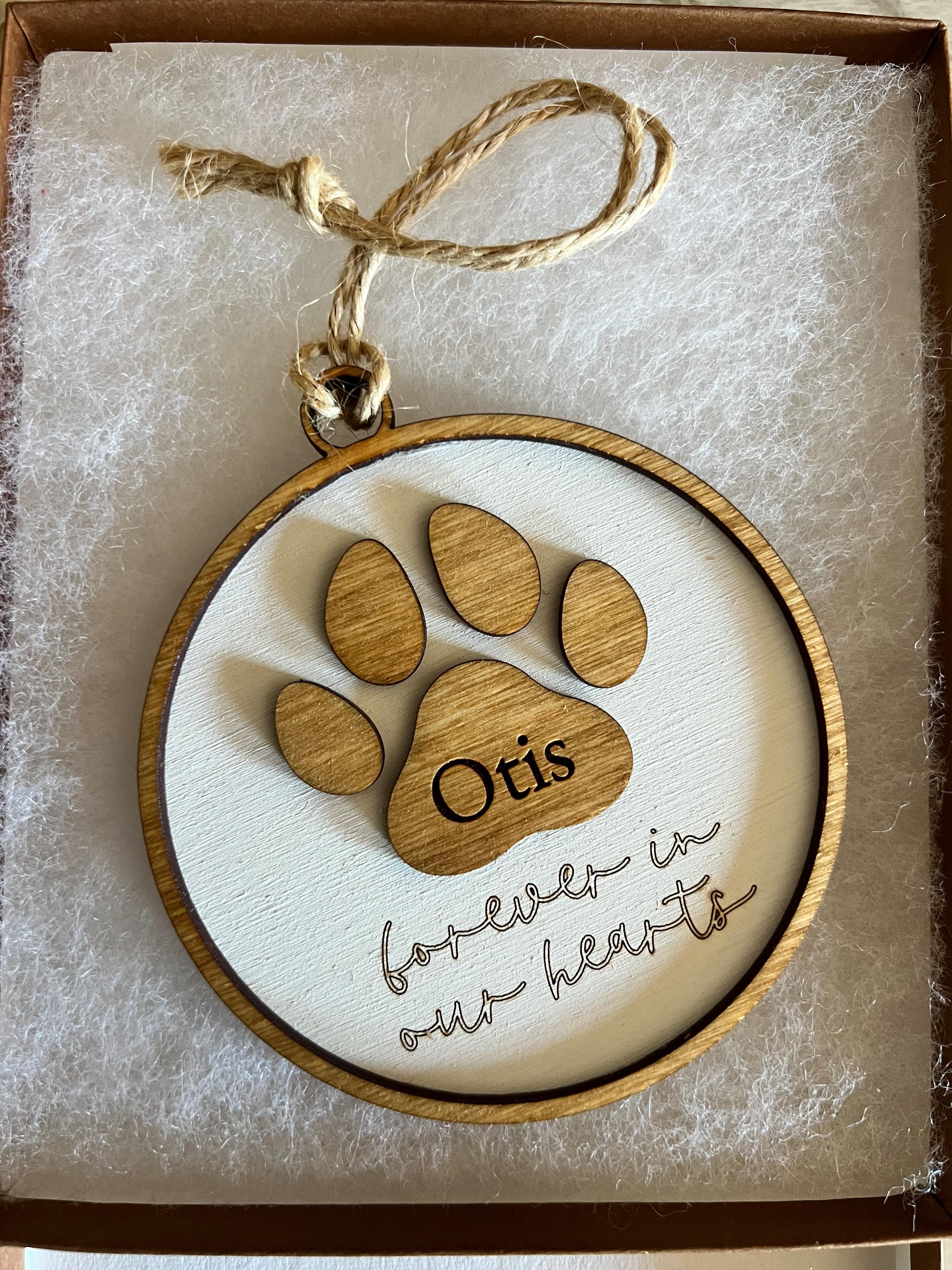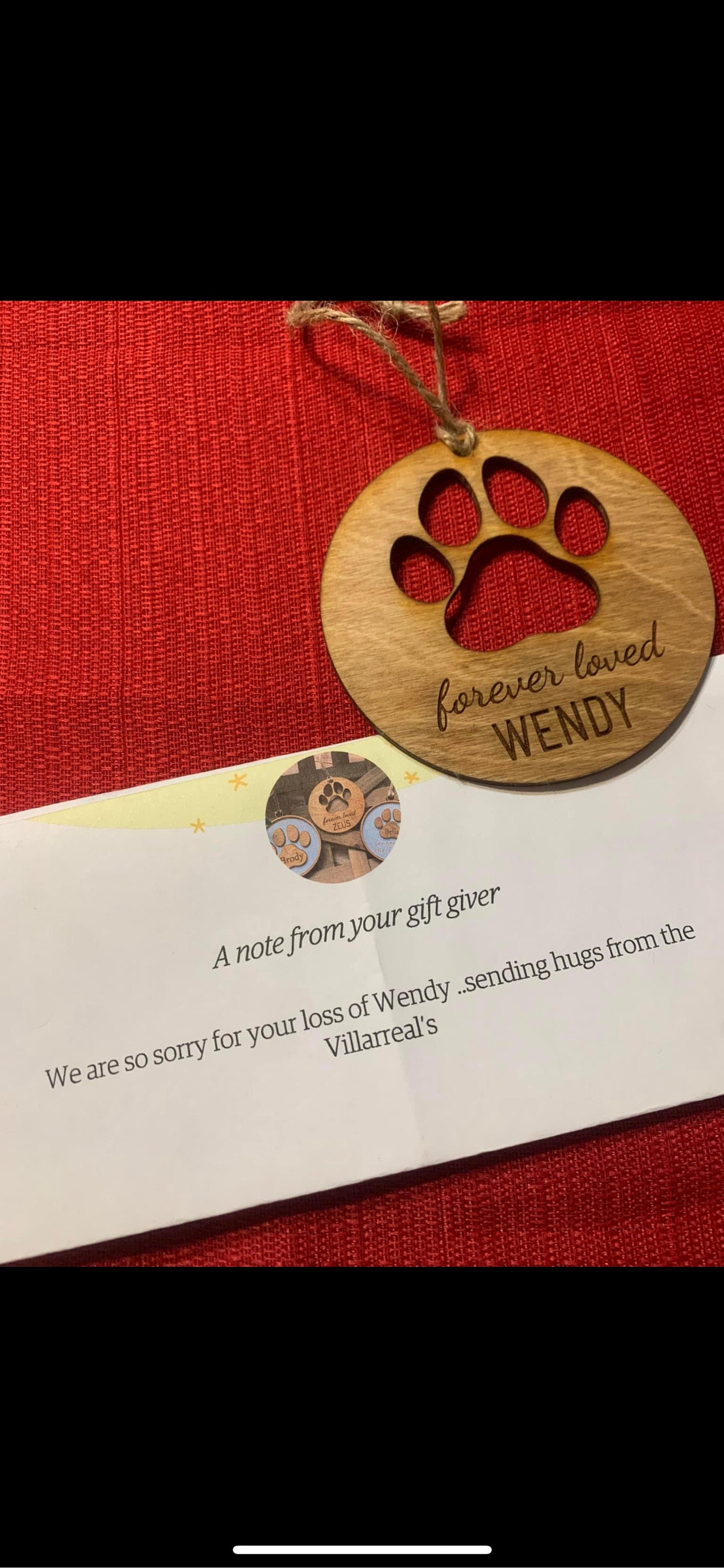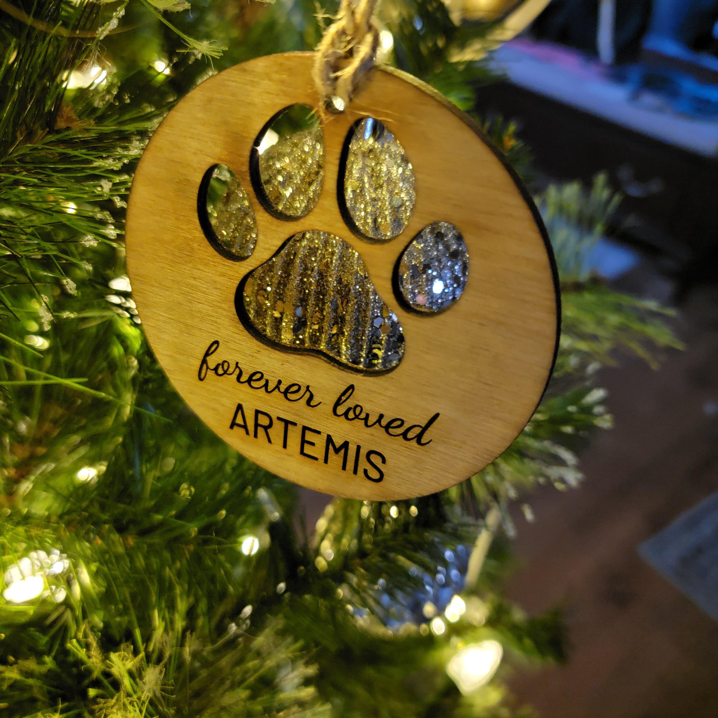 Honor your beloved pet with these beautiful laser cut and engraved wood hangings that make great gifts for family, friends, or any pet lover. Hang on your Christmas tree, stocking, or display year-round.