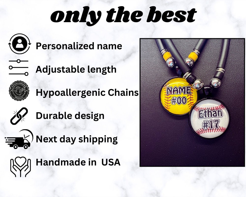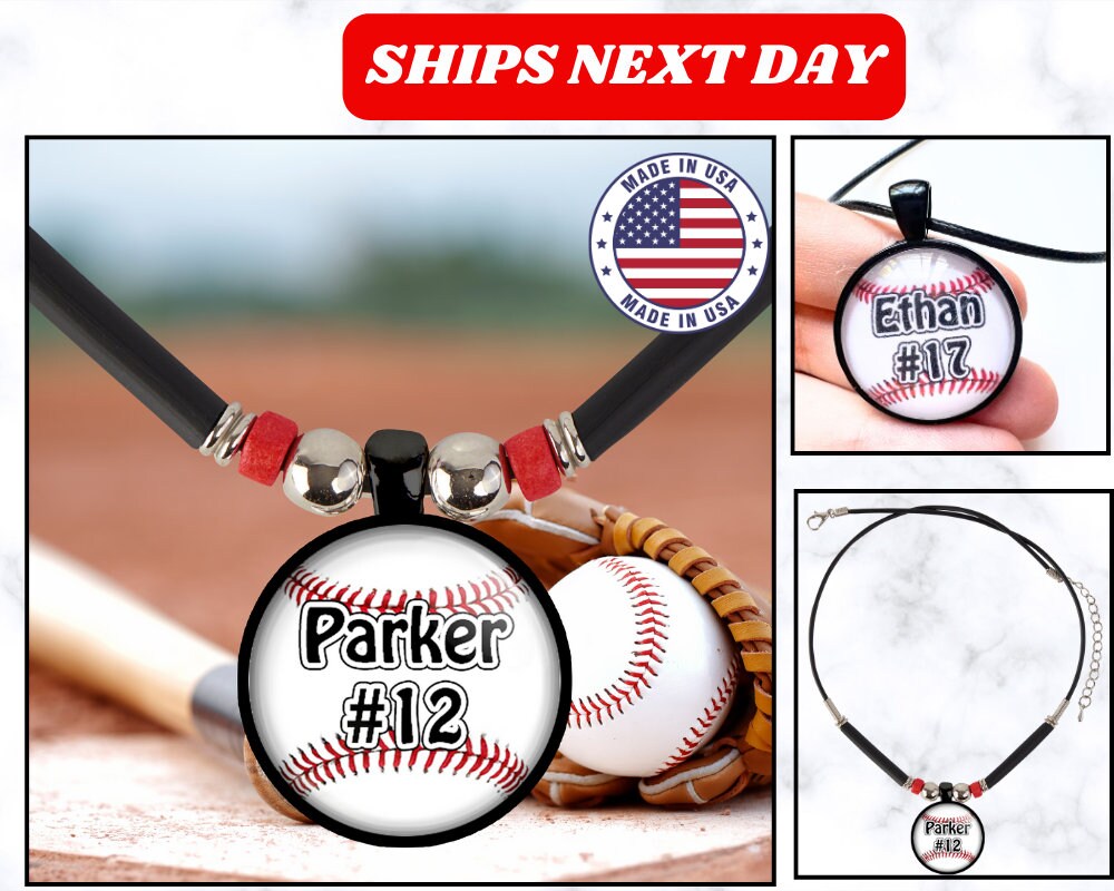 Personalized Boys Baseball Number Name Necklace Customized Baseball Charm For Kids Name Number Baseball Pendant for Mom & coach Team Gift