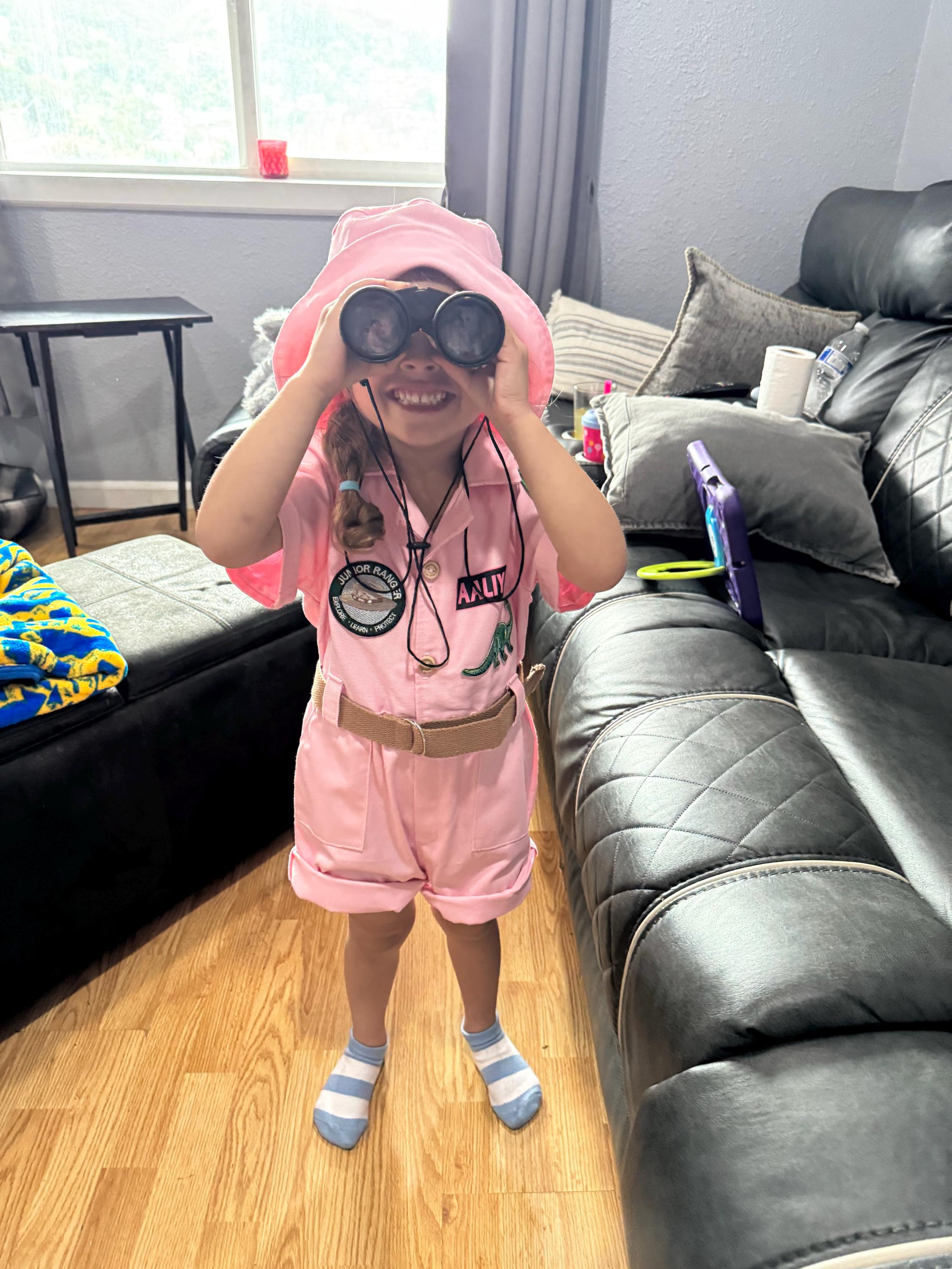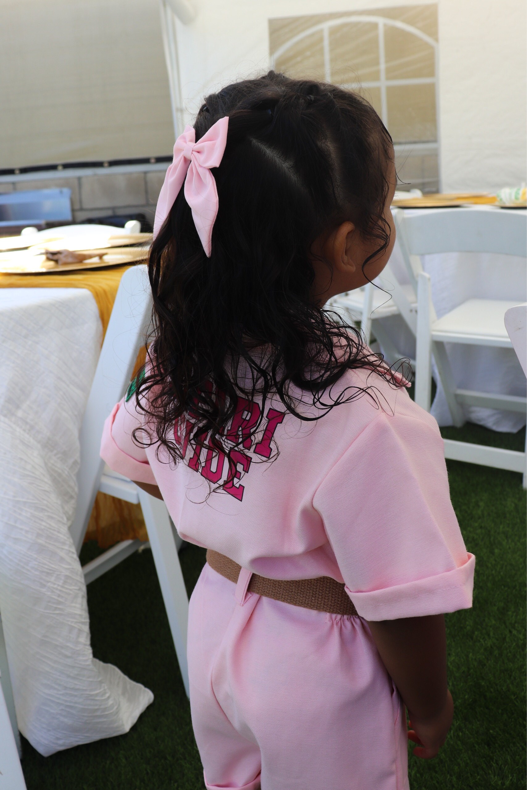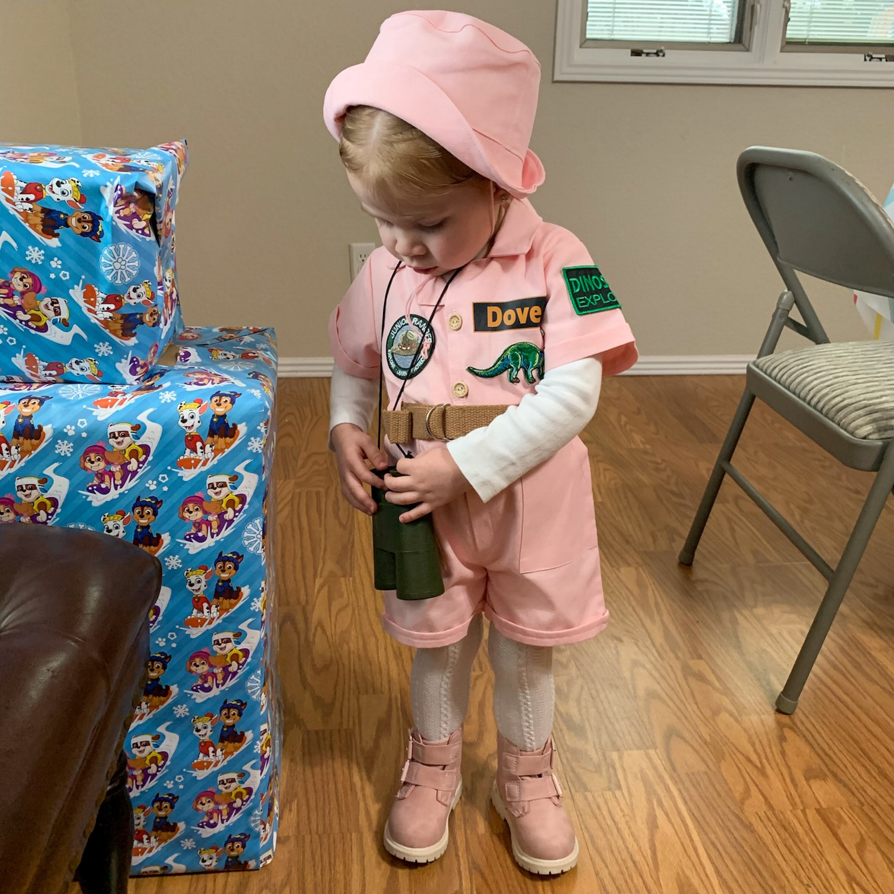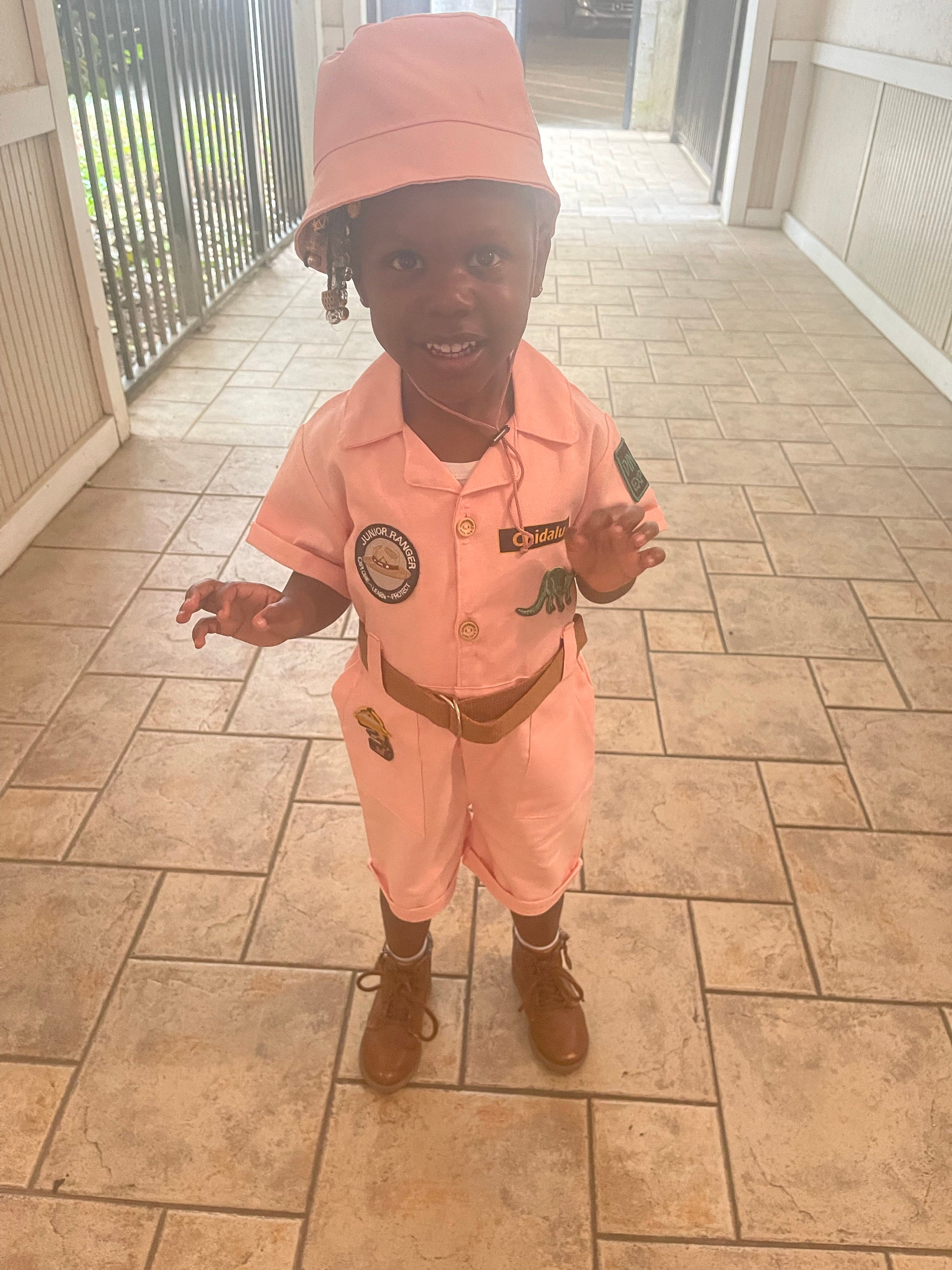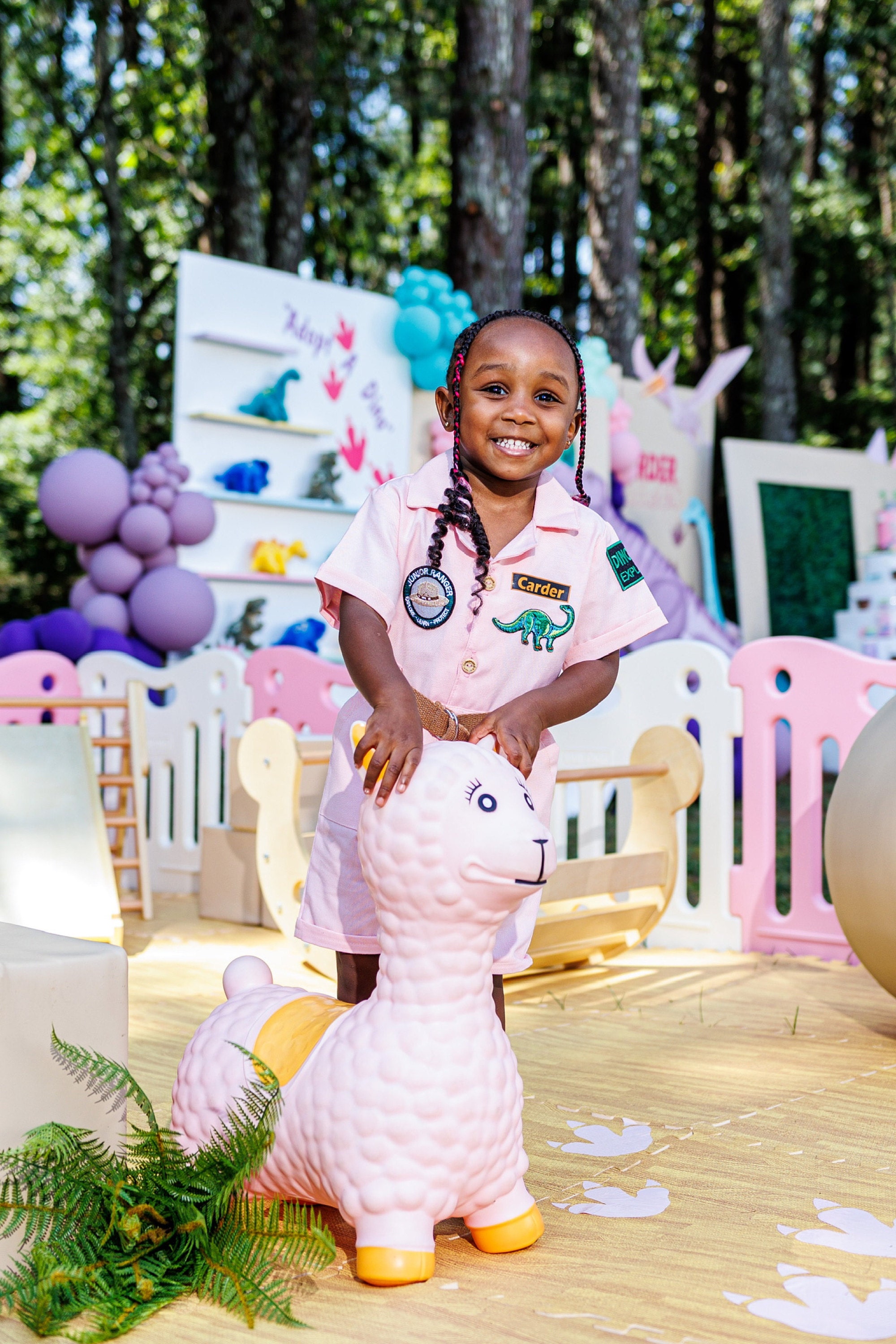 🦕Made with the utmost care and attention to detail, this one piece jumpsuit captures the essence of a true dinosaur explorer. The jumpsuit features a safari-inspired design with pink tones, complete with adorable animal patches that add a touch of authenticity.